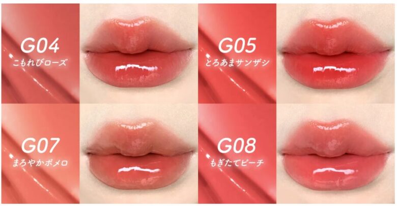 全4色展開(G04 こもれびローズ、G05 とろあまサンザシ、G07 まろやかポメロ、G08 もぎたてピーチ)で、G07とG08の2色は日本限定カラーのようです。