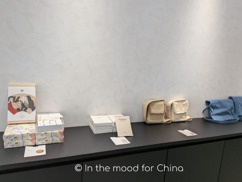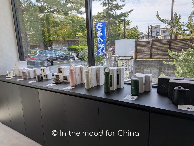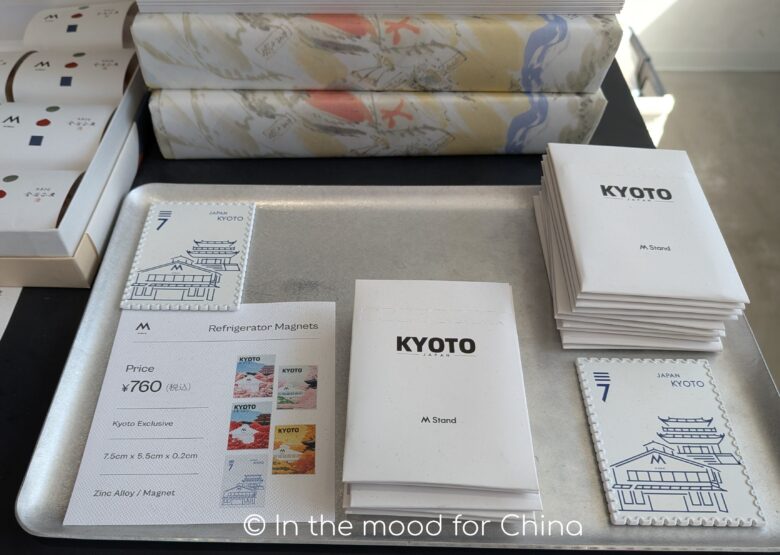 グッズコーナーもあり、タンブラーやバッグなど充実したラインナップ。京都限定マグネットや和菓子も売っていました。