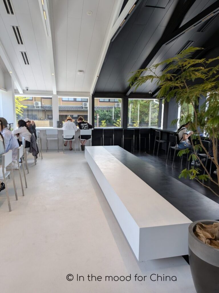 京都らしく和の要素も取り入れた、落ち着いた感じの外観でした。内装は白と黒のモノトーンカラーで統一されていて、ゆっくり落ち着いて過ごせそうな雰囲気でした。
